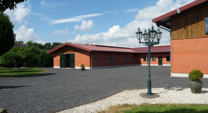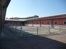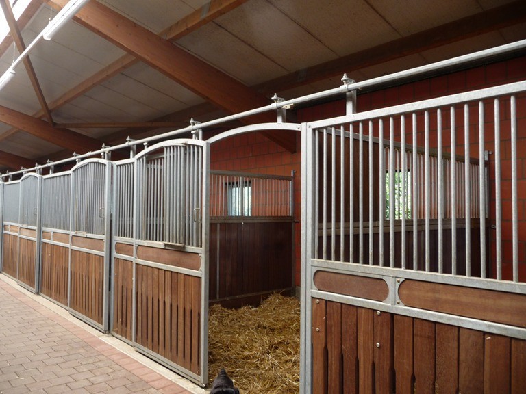In einem voll isolierten Stall befinden sich 34 exclusive Boxen, in denen sich jedes auch verwöhnte Pferd wohl fühlt. Alle Boxen haben Fenster. Der Stalltrakt ist hell und freundlich und hat ebenfalls ein ISO Lichtfirst. Eine Waschbox mit Warmwasser und eine Solariumbox mit Warmluftgebläse stehen zur Verfügung.