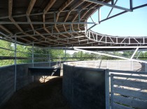 68x28 Meter groß. Die Halle ist voll isoliert, sie hat einen 4 Meter breiten ISO Lichtfirst mit Dauerbelüftung sowie Thermopane Verglasung rundum. Reitmaß 60 x 22 Meter